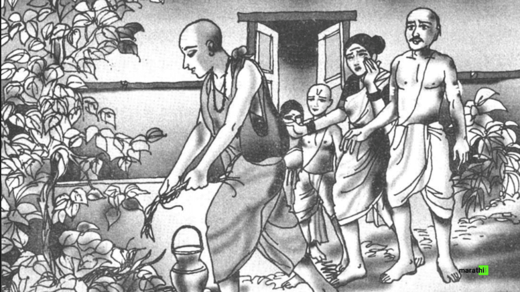 येणेंपरी स्त्रियेसी । संबोधित परियेसीं । काढोनि वेल-शाखेसी। टाकिता झाला गंगेत ।।६०।।